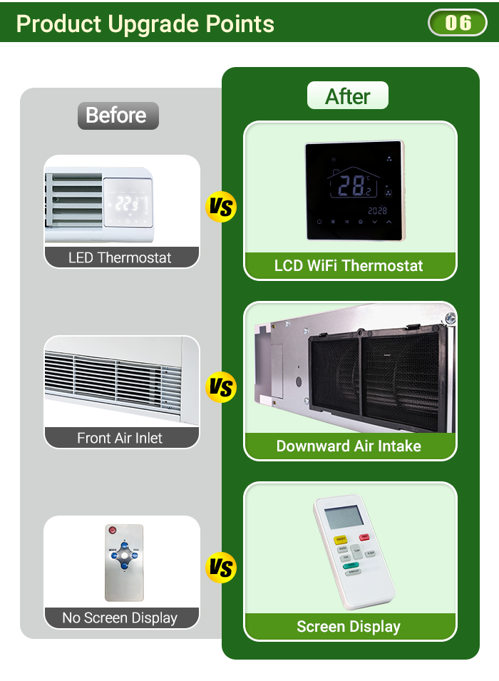 The ultra-thin exposed fan coil unit is milky white with a body thickness of only 130mm. It can be wall-mounted, vertically or horizontally installed, and is very suitable for old house renovation and new house decoration.
